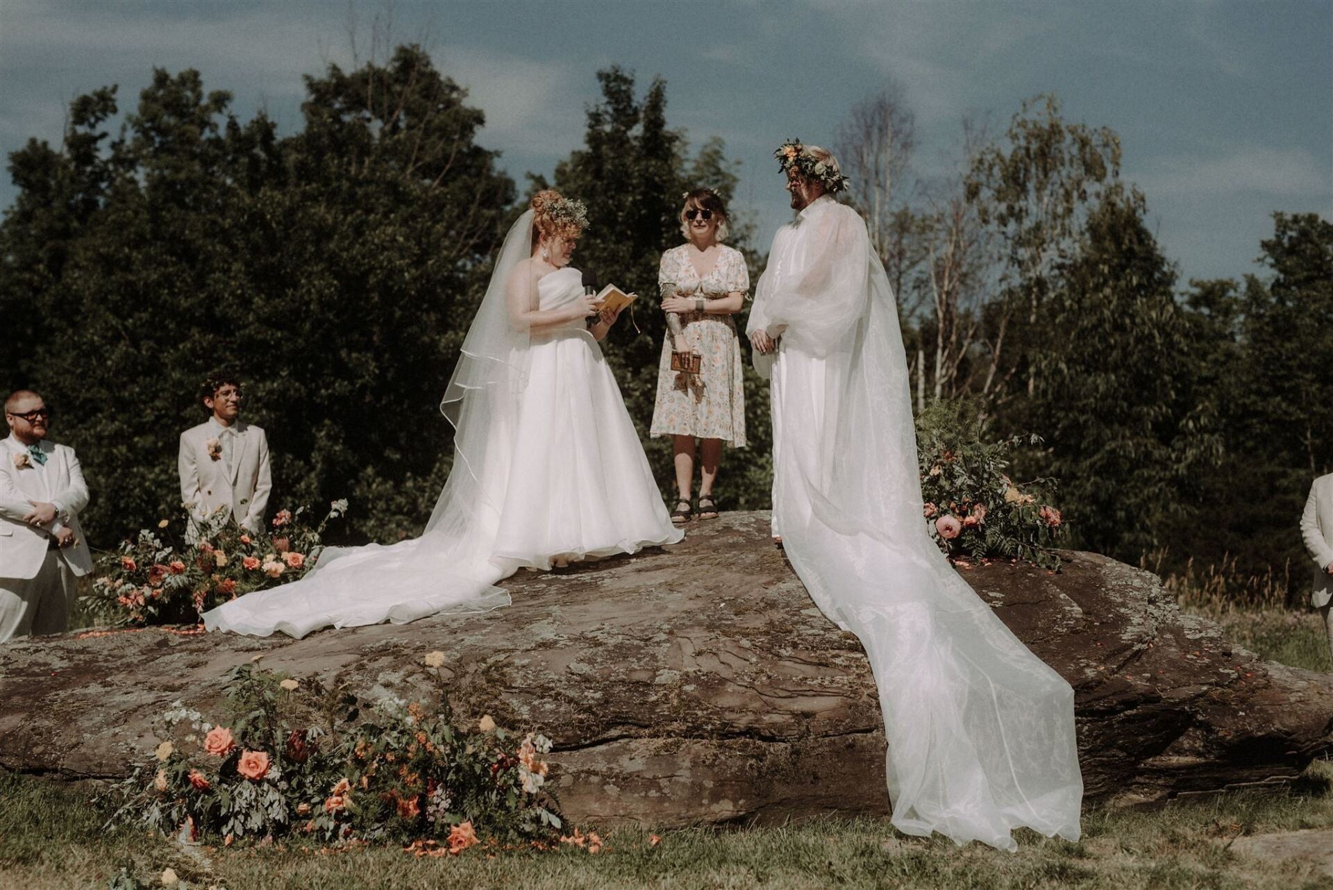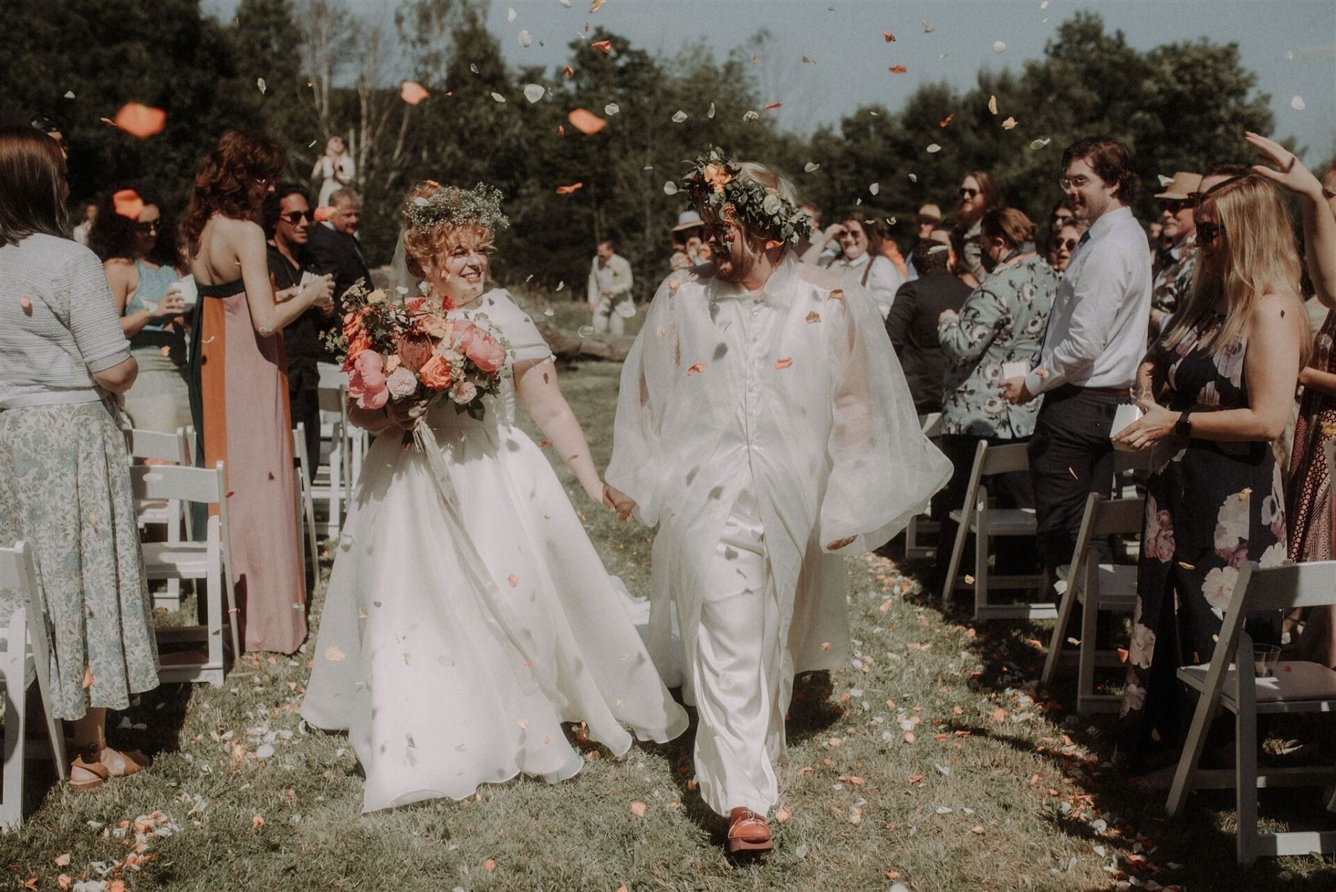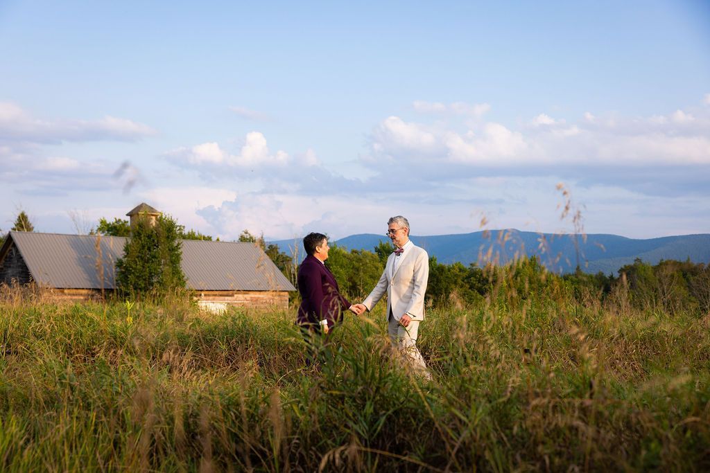 Adena Orchard is a truly special place. It has breathtaking mountain views, rolling meadows, and gorgeously restored barns all paired with a delightfully unpretentious and unstuffy vibe. Many of our guests came up to us on our wedding day (and for weeks after!) to remark on what a perfect location Adena Orchard was. What truly sets it apart, though, is Alana and Kevin's flexibility and inclusiveness. They know that each wedding day is as different as the people involved, and they celebrate and uplift the unique love and personalities of the families being joined. They've eschewed the cookie-cutter, auto-pilot, wedding-machine and instead make space for your creativity, your individualized stories, and your dreams. For us, this meant a ceremony under the old vine apple tree looking out over the pond, a cocktail hour in the Rosedale Barn, dinner al fresco in the early evening in the open fields, a full on drag cabaret in the Kirkman for our reception, and a sing-a-long around the bonfire to end the night. It was the absolutely perfect wedding -- for us -- and we feel a deep connection to this family and their place. Our tree grows in Jewett.
